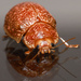 The pointed front angles of the pronotum and elytral punctures not in rows, as well as the scattered small yellow patches (verrucae) on the elytra and totally pale brown antennae identify this as P. variolosa.