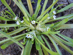 Crassula connata is a succulent plant known by the common names sand pygmyweed and pygmy stonecrop. It is a very small plant which grows in patches on the ground, especially in rocky areas. It is also sometimes associated with vernal pool plant communities. The stems are a few centimeters in length and are covered with tiny fleshy pointed leaves. Each leaf is only ...more ↓