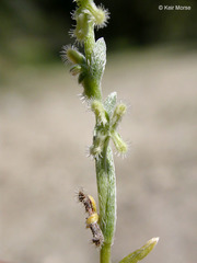 Heliotropium curassavicum is a species of heliotrope that is native to much of the Americas, from Canada to Argentina, and can be found on other continents as an introduced species. It is known by several common names, such as Seaside Heliotrope, Salt Heliotrope, Monkey Tail, Quail Plant and "Chinese parsley" (although this last name is also used for coriander. in ...more ↓