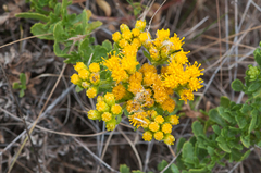Astragalus miguelensis is a rare species of milkvetch known by the common name San Miguel milkvetch. It is endemic to five of the eight Channel Islands of California. This is a mat-forming perennial herb growing in wide, thick patches on rocky seaside bluffs and beaches. The abundant leaves are up to 12 centimeters long and are made up of many woolly oval-shaped leaflets. ...more ↓