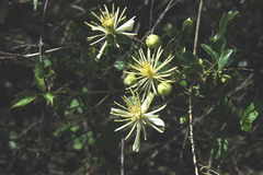 Clematis pauciflora is a species of clematis known by the common name ropevine. This flowering plant is native to the high desert and chaparral slopes of southern California and Baja California. It is a woody vine with nodes every few centimeters which produce leaves and flowers. The leaves are made up of several dark green lobed leaflets, each one to three centimeters ...more ↓