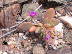 Mesembryanthemum nodiflorum is a species of succulent plant in the ice plant family known by the common name slenderleaf ice plant. It is native to southern Africa, but it is known in many other places as an introduced species and sometimes an invasive weed, including several regions of Australia, parts of the western United States and adjacent Mexico, and some Atlantic ...more ↓