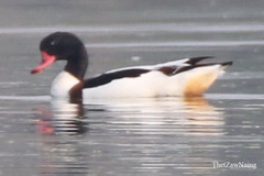 The common shelduck (Tadorna tadorna) is a waterfowl species of the shelduck genus, Tadorna. It is widespread and common in Eurasia, mainly breeding in temperate and wintering in subtropical regions; in winter, it can also be found in the Maghreb. Its scientific name comes from the French name Tadorne for this species. It may originally derive from Celtic roots ...more ↓