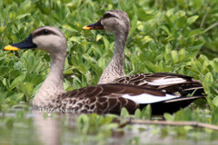The Indian spot-billed duck (Anas poecilorhyncha) is a large dabbling duck which is a non-migratory breeding duck throughout freshwater wetlands in the Indian subcontinent. The name is derived from the red spot at the base of the bill that is found in the mainland Indian population. When in water it can be recognized from a long distance by the white tertials that form a stripe ...more ↓
