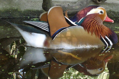 The mandarin duck (Aix galericulata) is a perching duck species found in East Asia. It is medium-sized, at 41–49 cm (16–19 in) long with a 65–75 cm (26–30 in) wingspan. It is closely related to the North American wood duck, the only other member of the genus Aix. Aix is an Ancient Greek word which was used by Aristotle to refer to an unknown diving bird, and ...more ↓