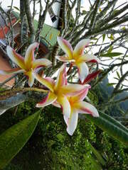 Plumeria (/pluːˈmɛriə/) is a genus of flowering plants in the dogbane family, Apocynaceae. Most species are deciduous shrubs or small trees. The species variously are indigenous to Mexico, Polynesia, Central America, and the Caribbean, and as far south as Brazil, but are grown as cosmopolitan ornamentals in warm regions. Common names for plants in the genus vary widely according ...more ↓