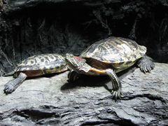 The Red-Eared Slider (Trachemys scripta elegans), known commonly in the UK as the Red-Eared Terrapin, is a semi-aquatic turtle belonging to the family Emydidae. It is a subspecies of Pond Slider. It is a native of the southern United States, but has become common in various areas of the world due to the pet trade. They are very popular pets in the United States, the Netherlands, ...more ↓