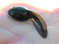The Western toad or Boreal toad (Anaxyrus boreas) is a large toad species, between 5.6 and 13Â cm long, of western North America. It has a white or cream dorsal stripe, and is dusky gray or greenish dorsally with skin glands concentrated within the dark blotches. Its parotoid glands are oval, widely separated, and larger than the upper eyelids. It has a mottled venter and ...more ↓