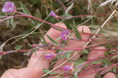 Clarkia davyi is species of flowering plant in the evening primrose family known by the common name Davy's fairyfan, or Davy's clarkia. It is endemic to California, where it grows in coastal habitats such as beaches and bluffs. This is an annual herb producing a thin stem which grows along the ground or somewhat upright. It is lined with small oval-shaped leaves ...more ↓