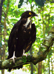 The Bat Hawk (Macheiramphus alcinus) is a raptor found in sub-Saharan Africa and south Asia to New Guinea. It is named for its diet, which consists mainly of bats. It requires open space in which to hunt, but will live anywhere from dense rainforest to semi-arid veld.