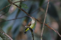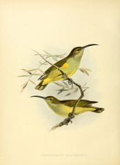The Little Spiderhunter (Arachnothera longirostra) is a species of long-billed nectar feeding bird in the Nectariniidae family found in the moist forests of South and Southeast Asia. Unlike typical sunbirds, males and females are very similar in plumage. They are usually seen in ones or twos and frequently make a tzeck call and are most often found near flowering plants ...more ↓
