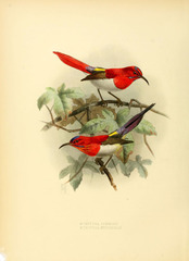 The Javan Sunbird or Scarlet Sunbird (Aethopyga mystacalis) is a species of bird in the Nectariniidae family. It is found in Brunei, Indonesia, Malaysia, and Thailand. Its natural habitats are subtropical or tropical moist lowland forests and subtropical or tropical moist montane forests.