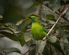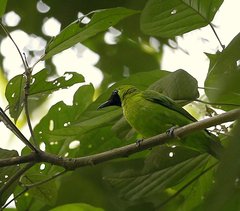 The Lesser Green Leafbird (Chloropsis cyanopogon) is a species of bird in the Chloropseidae family. It is found in Brunei, Indonesia, Malaysia, Myanmar, Singapore, and Thailand. Its natural habitat is subtropical or tropical moist lowland forests. It is threatened by habitat loss.