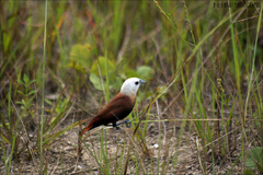 The Tricoloured Munia (Lonchura malacca) is an estrildid finch, native to India, Sri Lanka, Southern China, Taiwan and most of Southeast Asia. The species was also introduced to Guam, Jamaica, Palau, Puerto Rico, Hawaii, Vanuatu and Venezuela. This species too like the Chestnut Munia has been known as the Black-headed Munia in the past. Immature birds have pale brown ...more ↓