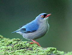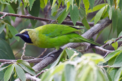 The Blue-winged Leafbird (Chloropsis cochinchinensis) is a species of leafbird found in forest and second growth from far north-eastern India and throughout Southeast Asia as far east as Borneo and as far south as Java. It commonly includes Jerdon's Leafbird (C. jerdoni) from the Indian Subcontinent, and the Bornean Leafbird (C. kinabaluensis) from northern Borneo ...more ↓