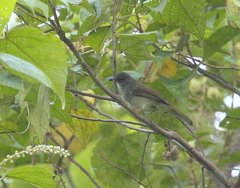 The Buff-vented Bulbul (Iole olivacea) is a species of songbird in the Pycnonotidae family. It is found in Brunei, Indonesia, Malaysia, Burma, Singapore, and Thailand. Its natural habitat is subtropical or tropical moist lowland forests. It is threatened by habitat loss.
