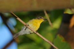 The Yellow-vented Flowerpecker (Dicaeum chrysorrheum) is a species of bird in the Dicaeidae family. It is found in Bangladesh, Bhutan, Brunei, Cambodia, China, India, Indonesia, Laos, Malaysia, Myanmar, Nepal, Singapore, Thailand, and Vietnam. Its natural habitats are subtropical or tropical moist lowland forests and subtropical or tropical moist montane forests.