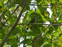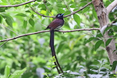 The Japanese paradise flycatcher (Terpsiphone atrocaudata), also called the black paradise flycatcher, is a medium-sized passerine bird native to southeastern Asia. It is a glossy black, chestnut and white bird, slightly smaller than the Asian paradise flycatcher, but similar in appearance. Males have exceptionally long tails. Females are generally duller in appearance ...more ↓