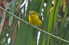 The Common Iora (Aegithina tiphia) is a small passerine bird found across the tropical Indian Subcontinent with populations showing plumage variations, some of which are designated as subspecies. A species found in scrub and forest, it is easily detected from its loud whistles and the bright colours. During the breeding season, males display by fluffing up their feathers and ...more ↓