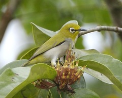 The Oriental White-eye (Zosterops palpebrosus) is a small passerine bird in the white-eye family. It is a resident breeder in open woodland in tropical Asia, east from the Indian Subcontinent to Southeast Asia, extending to Indonesia and Malaysia. They forage in small groups, feeding on nectar and small insects. They are easily identified by the distinctive white eye-ring and ...more ↓