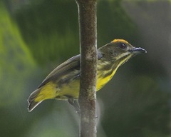 The Yellow-breasted Flowerpecker (Prionochilus maculatus) is a species of bird in the Dicaeidae family. It is found in Brunei, Indonesia, Malaysia, Myanmar, Singapore, and Thailand. Its natural habitats are subtropical or tropical moist lowland forests and subtropical or tropical moist montane forests.