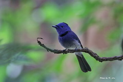 The Black-naped Monarch or Black-naped Blue Flycatcher (Hypothymis azurea) is a slim and agile passerine bird belonging to the family of monarch flycatchers. They are sexually dimorphic with males having a distinctive black patch on the back of the head and a narrow black half collar ("necklace") while the female is duller and lacks the black markings. They have a call ...more ↓