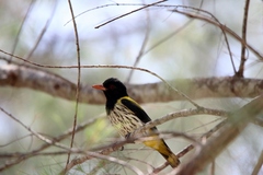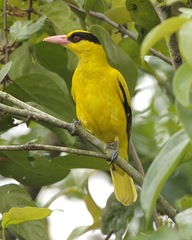 The Black-naped Oriole (Oriolus chinensis) is a bird of the oriole family and is found in many parts of Asia. There are several distinctive populations within wide distribution range of the species and in the past the Slender-billed Oriole (Oriolus tenuirostris) was included as a subspecies. Unlike the Golden Oriole which only has a short and narrow eye-stripe, the ...more ↓