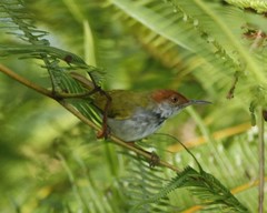 The Ashy Tailorbird (Orthotomus ruficeps) is a species of bird formerly placed in the "Old World warbler" assemblage, it but now placed in the family Cisticolidae. It is found in Brunei, Indonesia, Malaysia, Myanmar, the Philippines, Singapore, and Thailand, Vietnam. Its natural habitats are subtropical or tropical moist lowland forests and subtropical or tropical mangrove ...more ↓
