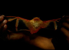The Clear-winged Woolly Bat (Kerivoula pellucida) is a species of vesper bat in the Vespertilionidae family. It is found in Brunei, Indonesia, Malaysia, and the Philippines. Members of this species are relatively small, typically weighing about 4.5g and mainly forages in the understory of tropical forests. This species also presents a unique variant of echolocation that ...more ↓