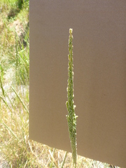 Echinochloa crus-galli is a type of wild grass originating from tropical Asia that was formerly classified as a type of panicum grass. It is commonly known as cockspur (or cockspur grass), barnyard millet, Japanese millet, water grass, common barnyard grass, or simply "barnyard grass" (which may refer to any species of ...more ↓