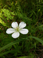 Geranium richardsonii is a species of geranium known by the common name Richardson's geranium. It is native to western North America from Alaska to New Mexico, where it can be found in a number of habitats, especially mountains and forests. This is a perennial herb varying in maximum height from 20 to 80 centimeters. The plant grows from a tough, woody taproot and older ...more ↓