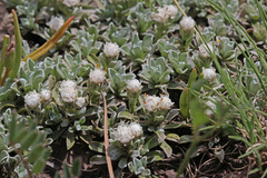 Antennaria dimorpha is a species of flowering plant in the daisy family known by the common name low pussytoes. It is native to western North America from British Columbia to California to Nebraska, where it is generally found in dry areas. This is a small mat-forming perennial herb growing in a flat patch from a thick, branching caudex. The spoon-shaped leaves are up to ...more ↓