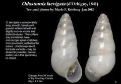 Odostomia is the most speciose genus of minute sea snails, pyramidellid gastropod mollusks. This genus is placed in the family Pyramidellidae in the subfamily Odostomiinae. There are several hundred species in this diverse genus (Schander et al. 1999)...