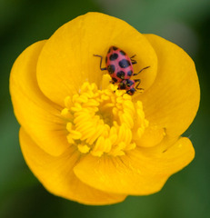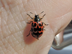 Coleomegilla maculata, commonly known as the spotted lady beetle, pink spotted lady beetle or twelve-spotted lady beetle, is a large coccinellid beetle native to North America. The adults and larvae feed primarily on aphids and the species has been used as a biological control agent.
