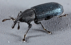 Otiorhynchus ovatus, also called the Strawberry Root Weevil, occurs across Canada and the northern United States and is one of the many species in the weevil family (Curculionidae). Its name comes from its affinity for strawberry plants, which form a large part of its diet. They are, however, known to feed on other plants as well. Occasionally the larvae cause serious damage to ...more ↓