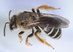 Halictus ligatus is a species of sweat bee from the family Halictidae, characterized by those bees that mine or burrow into the ground to create their nests. Moreover, As a member of the Halictidae, H. ligatus is commonly categorized a sweat bee due to its attraction to the salts of human perspiration. H. ligatus, like Lasioglossum zephyrum, is a ...more ↓