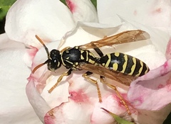 The European paper wasp (Polistes dominula often misspelled as dominulus) is one of the more common and well-known species of social wasps in Europe. Polistes dominula is often referred to as the European Paper Wasp because of its native distribution and its nests, which are constructed from paper and saliva. Its diet is more versatile than that of most Polistes ...more ↓