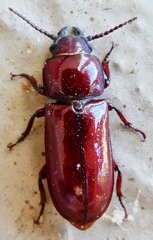 Cucujus clavipesis known as the flat bark beetle . It is found throughout North America . These are generally found near tree line under bark of dead poplar and ash trees . C. clavipes are described as phloem-feeding and often predators of other small insects, such as wood-boring beetles, and mites . These are usually seen during spring-summer seasons . Having a ...more ↓