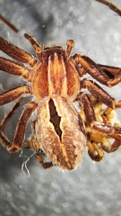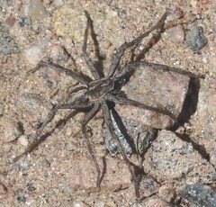 Hogna carolinensis, also known as the Carolina wolf spider, is usually regarded as the largest of the wolf spiders found in North America. The body length of females is typically 25 millimetres (0.98 in), and the body length of males is typically around 19 mm (0.75 in). Members of this species are known to live in burrows that they dig.