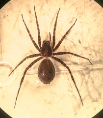 The hobo spider (Eratigena agrestis, formerly Tegenaria agrestis) is a member of the genus of spiders known colloquially as funnel web spiders, but not to be confused with the Australian funnel-web spider. The medical significance of its bite is still poorly understood and debated. Individuals construct a funnel-shaped structure of silk sheeting and lie in ...more ↓