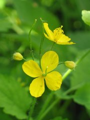 Chelidonium majus, commonly known as the greater celandine or tetterwort (in America, the latter refers to Sanguinaria canadensis), is the only species in the genus Chelidonium, family Papaveraceae. The lesser celandine is not closely related, but its family, the Ranunculaceae, is allied to the Papaveraceae (Order Ranunculales). The greater celandine ...more ↓