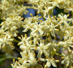 Sambucus nigra is a species of elder native to most of Europe, northwest Africa and southwest Asia. It is most commonly called just Elder or Elderberry, but also Black Elder, European Elder, European Elderberry, European Black Elderberry, Common Elder, or Elder Bush when distinction from other species of Sambucus is ...more ↓