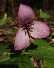 Trillium erectum, also known as Wake-robin, red trillium, purple trillium, Beth root or Stinking Benjamin, is a spring-flowering perennial plant native to the east and north-eastern areas of North America. The flowers are a deep red colour, and the plant takes its name Wake-robin by analogy with the Robin, which has a red breast that heralds ...more ↓