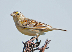 The Grasshopper Sparrow (Ammodramus savannarum) is a small American sparrow. The genus Ammodramus contains 9 species which inhabit grasslands and prairies.