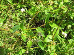 Japanese Stiltgrass (Microstegium vimineum), also known as Nepalese browntop and Asian stiltgrass, replaces native vegetation in a wide range of ecosystems including forested floodplains, forest edges, stream banks, fields, trails, and ditches as well as thriving as a weed in lawns and gardens. Japanese stiltgrass grows well in many light conditions (from ...more ↓