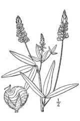 This annual plant is about ½–2' tall and more or less erect, although individual plants may sprawl. The stems are usually light green, round, and glabrous or slightly pubescent. The alternate leaves are up to 6" long and 1" across, although usually smaller. They are lanceolate or linear-lanceolate, hairless, smooth along the margins, and sometimes slightly ciliate. Each leaf has a short ...more ↓