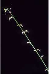 The Crane-fly Orchid (Tipularia discolor) is a perennial terrestrial woodland orchid, a member of the Orchidaceae. It is the only species of the genus Tipularia found in North America. This orchid grows a single leaf in September that disappears in the spring. The leaf is green with dark purple spots. The orchid blooms in mid-July to late August. The roots are a ...more ↓