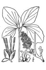 This herbaceous perennial plant is about 1-2½' tall, branching occasionally. The stems are light green to reddish purple, terete, and glabrous (var. longistylis) to hairy (var. villicaulis). The alternate leaves are ternately compound; the lower compound leaves are up to 9" long and 9" across, while the upper compound leaves are much smaller in size. Each compound leaf is divided into 3 ...more ↓