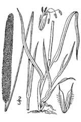 Setaria viridis is a species of grass known by many common names, including green foxtail and green bristlegrass. It is native to Eurasia, but it is known on most continents as an introduced species and is closely related to Setaria faberi, a noxious weed. It is a hardy grass which grows in many types of urban, cultivated, and disturbed habitat, including ...more ↓