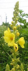 Biennials to 1.5 m tall, densely with grayish yellow stellate hairs. Basal and lower stem leaves petiolate; leaf blade oblanceolate-oblong, to 15 cm long, 6 cm wide, margin crenate. Other stem leaves gradually decreasing in size upward, sessile, oblong to ovate-oblong, base decurrent into wings. Spicate panicle cylindric, to 30 cm long, 2 cm wide, dense. Flowers usually few fascicled. Pedicel ...more ↓